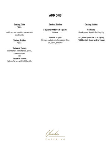 Items and prices are subject to change without prior notice. Contact our Catering Team for complete details.